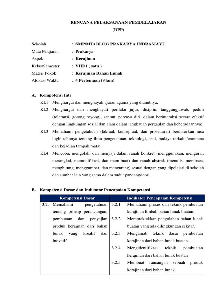 Silabus prakarya kelas 8 kerajinan bahan lunak. We did not find results for: Check spelling or type a new query. Maybe you would like to learn more about one of these?