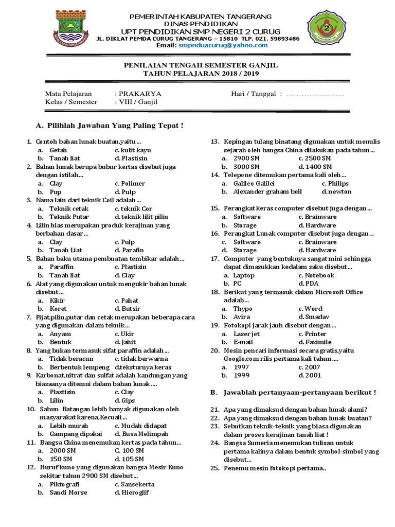 Soal Prakarya Kelas 8 Kerajinan Bahan Lunak Kami from imgv2-1-f.scribdassets.com Check spelling or type a new query. We did not find results for: Silabus prakarya kelas 8 kerajinan bahan lunak. Maybe you would like to learn more about one of these?